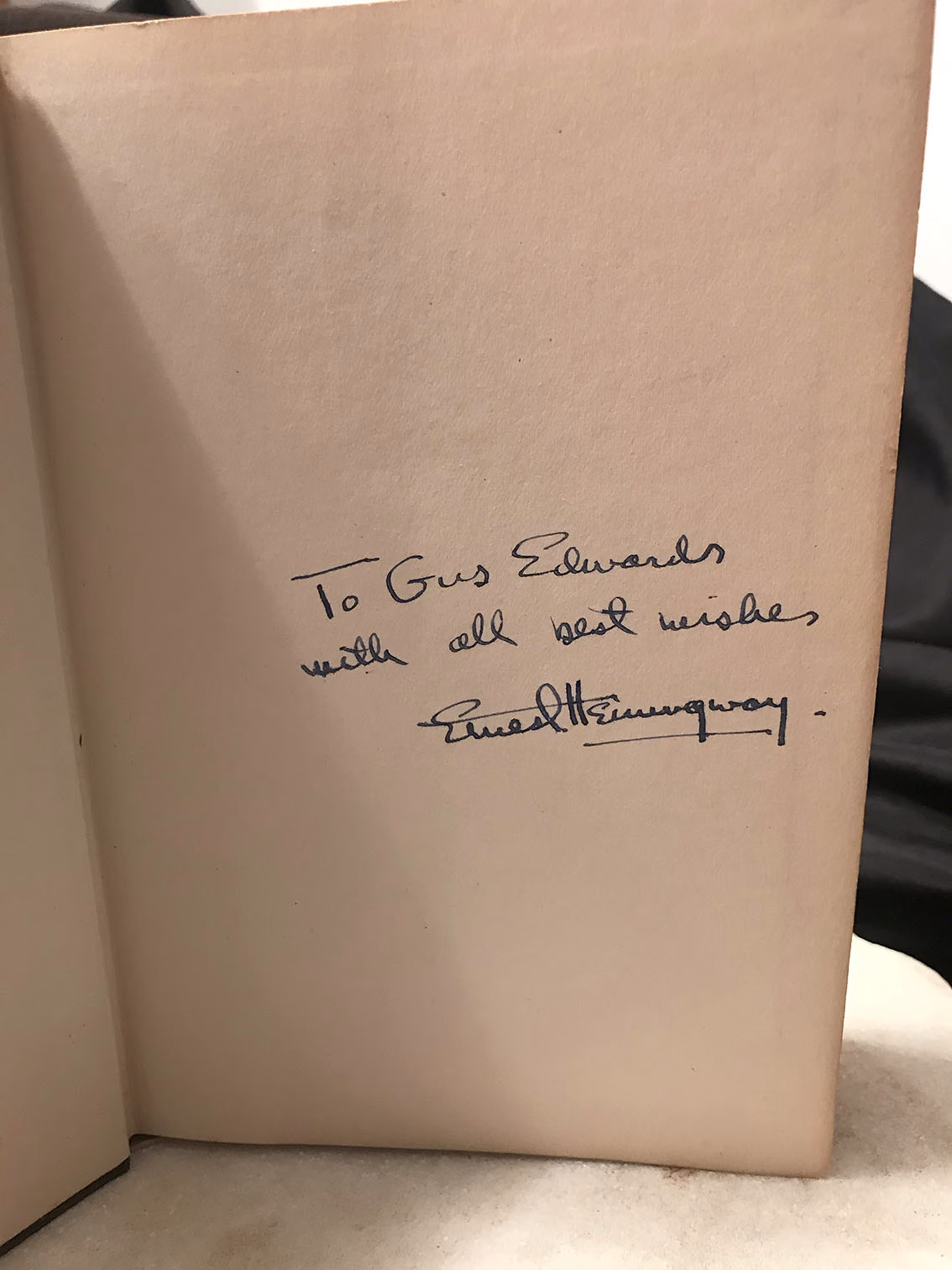 Inscribed by Ernest Hemingway to Gus Edwards.